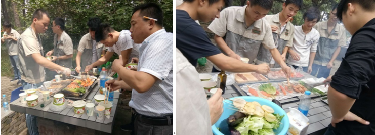 按照此次活动的预先安排 10:00部门人员在园内烧烤点集合,组织趣味烧烤大比拼。大家开始分工起来,择菜的择菜,配料的配料,各司其职,各组大厨纷纷闪亮登场,一较高下,好不热闹……